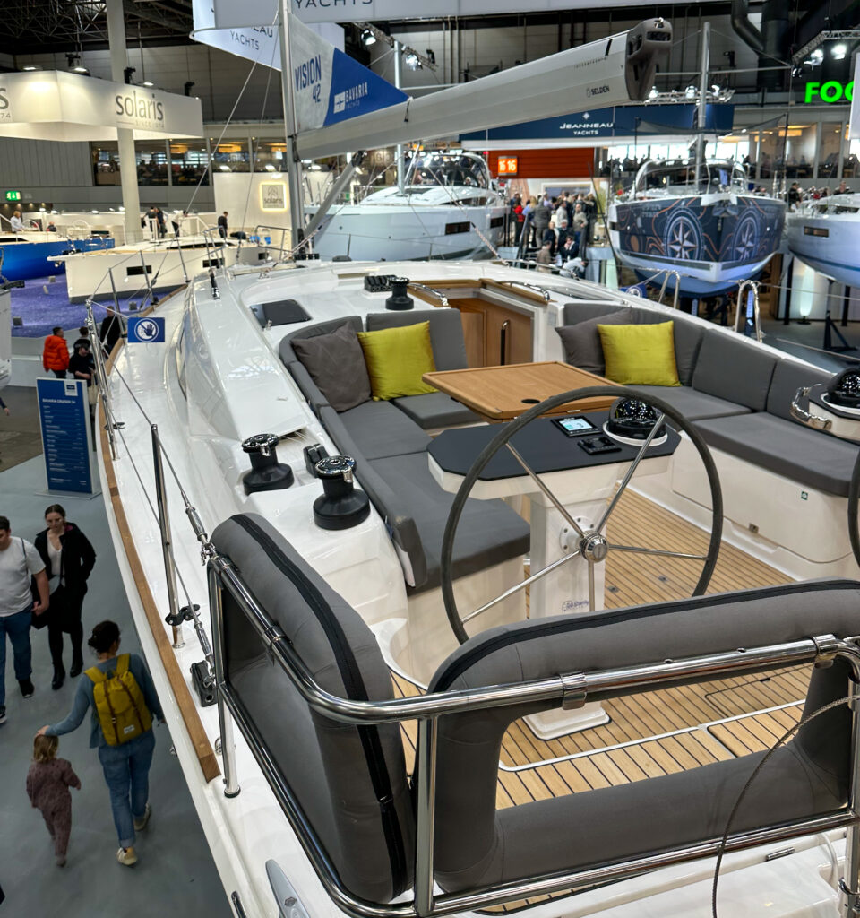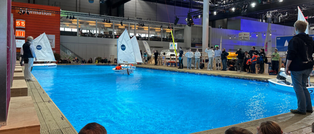 In den Hallen 15 und 16 waren nun endlich die Segelboote erreicht. Die großen Yachten hatten „nur“ einen angedeuteten Mast, da sich die Deckenhöhe der Messehalle nicht mit den originalen Masten vertragen hätte.